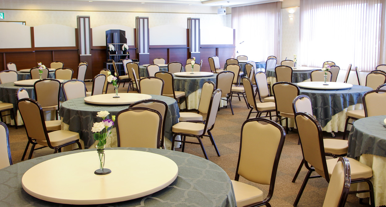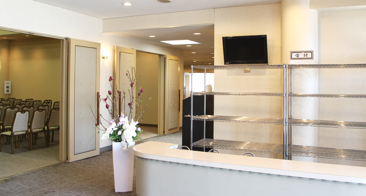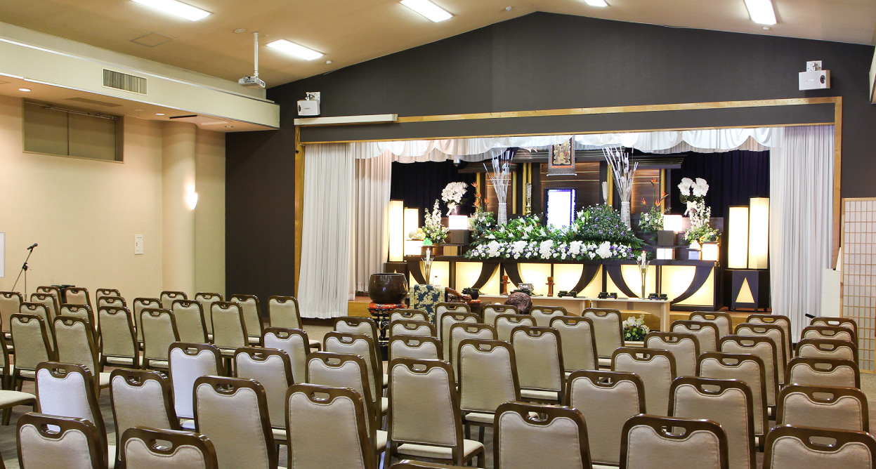 100〜150名規模の葬儀が可能な施設です。会食会場も広く、ゆっくりと故人様を偲ぶことができます。館内はバリヤフリーで、ご高齢の方や車椅子の方でも安心してご利用いただけます。
